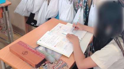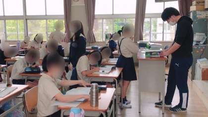6年生の算数です。算数ドリルを使っての学習です。できたら先生に丸つけをしてもらいます。