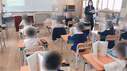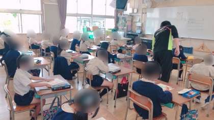 2年生の様子です。上段が1組の生活科、下段が2組の国語です。