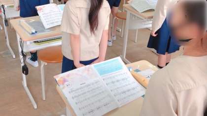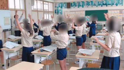 5年生の音楽です。「ビリーブ」の合唱をしていました。とても綺麗な合唱でした。手話も交えていました。