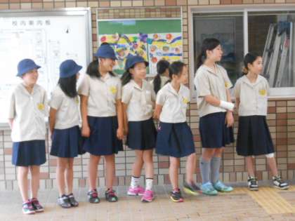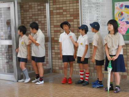 今日は朝から雨が降っていますが、梅香小学校では玄関で6年2組の児童の元気で大きな「おはようございます」の声が響いています。