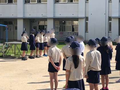 今日の全校朝会はラジオ体操や校長の話の後、各委員会の委員長さんの紹介がありました。委員長さん、今年一年よろしくお願いします。