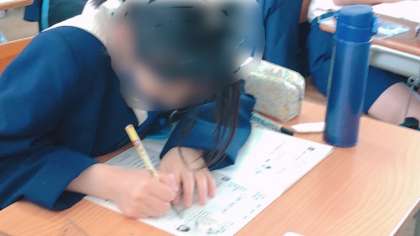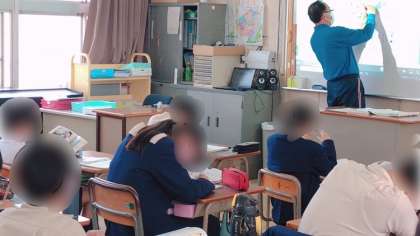 6年生の様子です。図形の学習で、線対称や点対象などについて確かめていました。