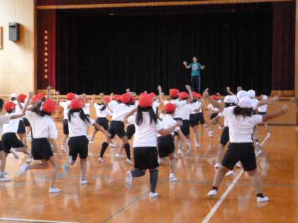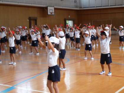 かけ声とともに腕を大きくふりあげて元気いっぱい踊っています。