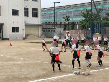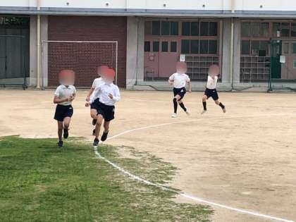3年生の体育の様子です。トラックをしっかり走った後、しっぽとり鬼で汗を流しました。
