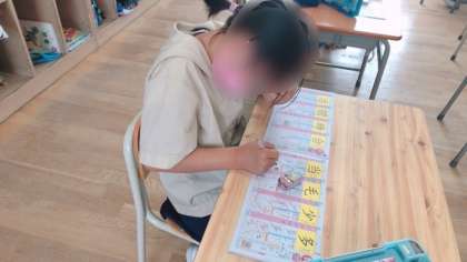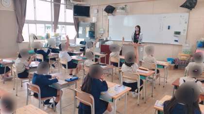 2年生の国語の様子です。「当」の漢字はどんな時に使うかを学習した後、書き方の練習をします。