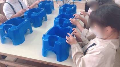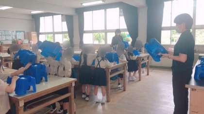 1年生の様子です。生活科で育てる朝顔の鉢植えの準備をしていました。