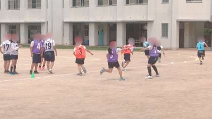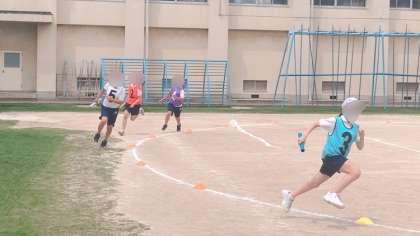 5年生の体育です。リレーをしていました。とても盛り上がっていました。