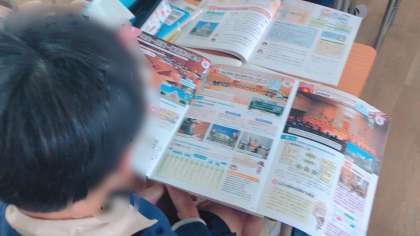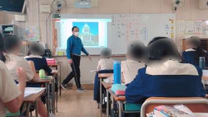 6年生の社会科です。日本の国会について、資料集や映像などを見ながら学習していました。