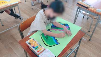 2年生の図工です。カラフルなたまごができています。何が生まれてくるのでしょう?