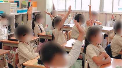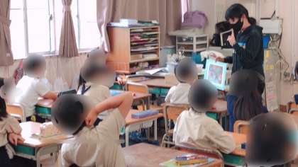 3年生の英語学習の様子です。C-NETの先生とパネルを見ながら英語で会話していました。