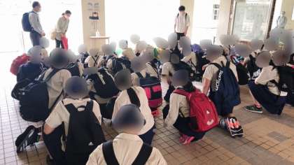 6年生一行は先程帰校しました。付き添いの先生にお礼を言って教室に入りました。