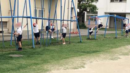 2年生の体育の様子です。遊具を使って体を巧みに動かす運動です。