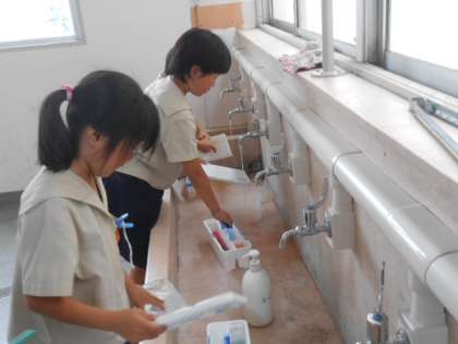 パレットなどを洗って後片付けもしっかりしています。