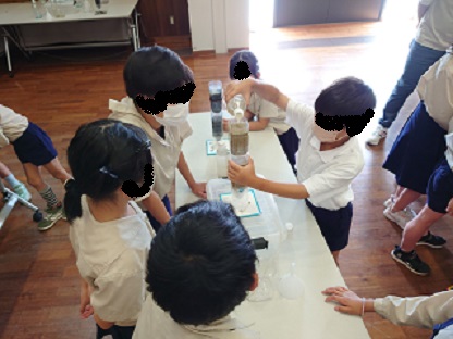 下水処理の仕組みについて模型を使って体験的に学習しました。