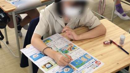 5年生の様子です。理科のテストに取り組んでいました。頑張って!!