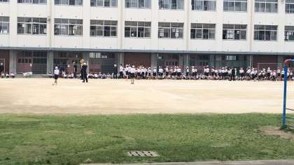 今年度も春日出小の皆さんが体力テストを実施するために来校されました。校舎建て替えも今年の10月で終わるそうです。よかったですね。