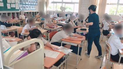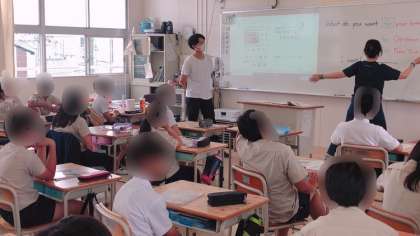 5年生の英語です。C-NETの先生と担任とのティームティーチングで授業を進めています。