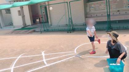 1年生の体育です。体力テストのソフトボール投げの記録を計測していました。しっかり体操して臨みました。