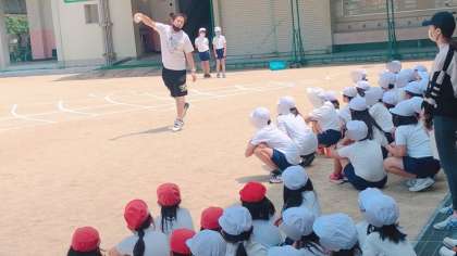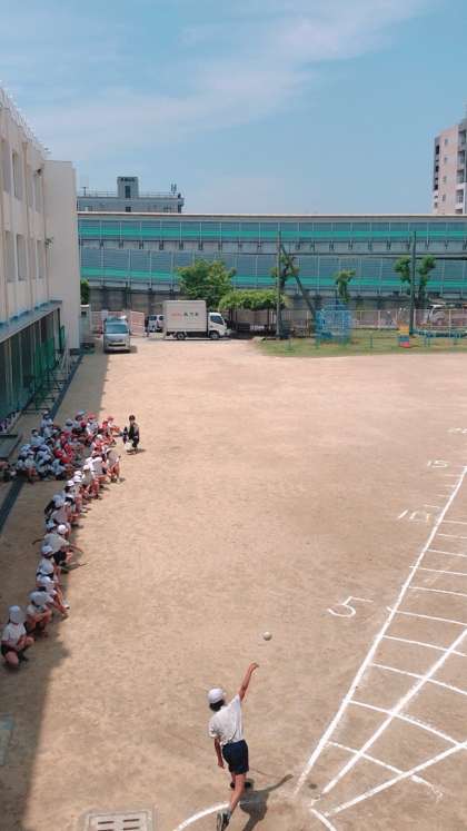 3・4年生が合同で体力テストのソフトボール投げの記録を計測していました。遠くに投げるにはどんなことに注意するかを確認して計測しました。いい記録が出たかな。