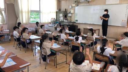 1年生の音楽科の様子です。曲に合わせて手拍子でリズムをとっていました。楽しそうです。