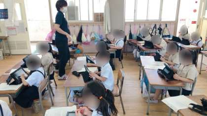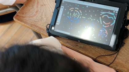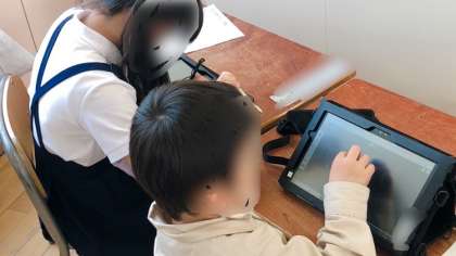 1年生の様子です。タブレット端末のお絵描き機能を使って画面にきれいな花火を描いていました。タブレット端末の起動やメインページに入るのがとても早くなりました。