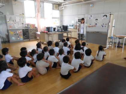 「みなさんおはようございます」と保健室のT先生が声をかけると元気よく答えることができました。「元気ですか?」と問うと「ハイ!」と答えることができます。運動家の練習でがんばるにはどうしたらいいかお話ししてくださいました。