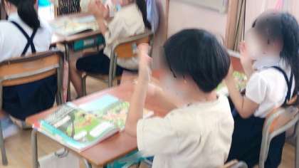 1年生の音楽の様子です。曲に合わせて歌ったり手拍子をしたりノリノリでした。