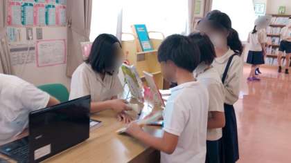 6年生の図書の様子です。係による貸し出し登録も慣れたものでスピーディーでした。