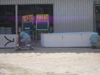 運動会の準備を着々と進めています。入退場門も色あせてきました。もう一度色を塗りなおしています。