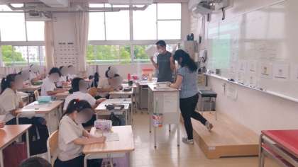 5年生の英語の様子です。担任とC-NETのリズミカルなかけ合いが子どもたちをのせてどんどん授業に引き込んでいきます。