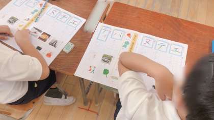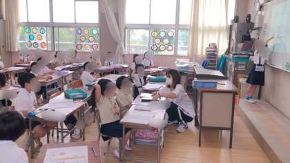 1年生の様子です。国語の学習で新しく習う漢字についてどんなことを見つけたか、みんなの前で発表していました。