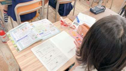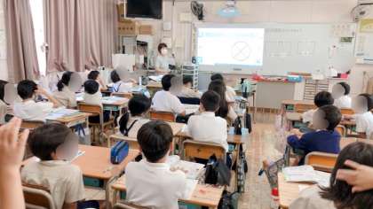 4年生の理科の様子です。電流の学習のおさらいで「この記号は乾電池を表すんやったよね。」っと表記記号の確認をしていました。