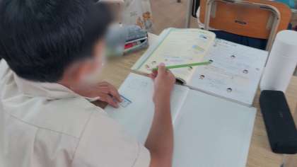 6年生の様子です。算数で、分数÷分数の求め方の学習をしていました。