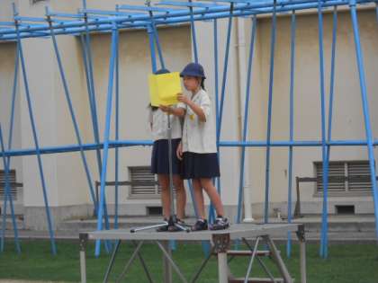 6年生が他学年に無事に帰ってきたことを報告しました。