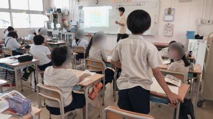 5年生の様子です。社会科で日本の米作りについて学習していました。今の米作り農家が抱えている課題について意見を出し合っていました。
