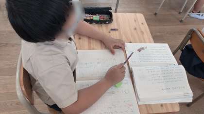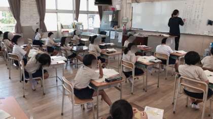 2年生の国語の様子です。先生の板書を見ながら説明文の要点をまとめていました。