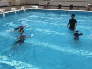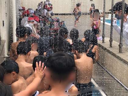 1・2年生のプール水泳学習の様子です。雨があがり、日差しがさしてきました。シャワーが気持ちよさそうです。水中かけっこで顔を何度も水に浸けながら走れる子がとても多くなりました。