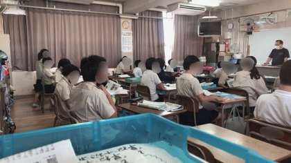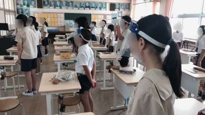 6年生の様子です。上段は1組、学活をしています。下段は2組、音楽の様子です。