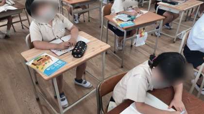 2年生の算数の様子です。足し算、引き算の復習をしていました。