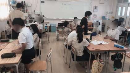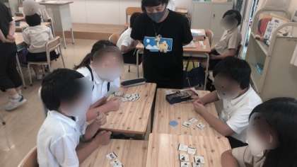 5年生の様子です。英語科の学習で、カードを使ったゲームをしながら自分の好きなことについて英語で伝えることをしていました。