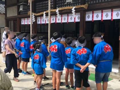 久しぶりに子ども神輿が巡行されました。本殿でお清めをした後、子どもも大人も威勢よく声をかけながら担いでいました。