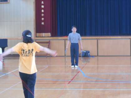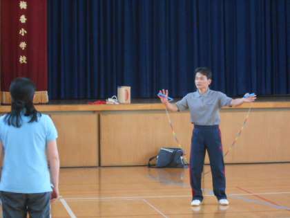今日は、「なわとび」名人をお招きして先生方がなわとびの勉強を行いました。