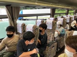 子どもたちは道中バスレクを楽しんでいます。今はビンゴ大会です。
