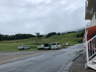 鉢伏高原に到着しました。霧がかかって山は見えない状況ですが、とても涼しいです。
