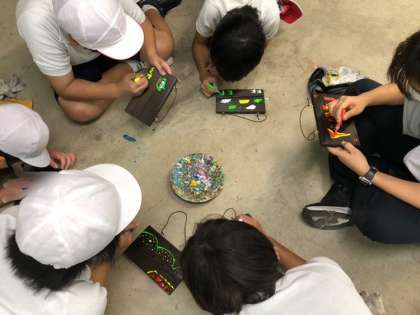 磨いた焼き板にカラーペンでデザインして世界に一つだけのボードが出来ました!
