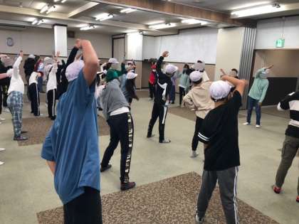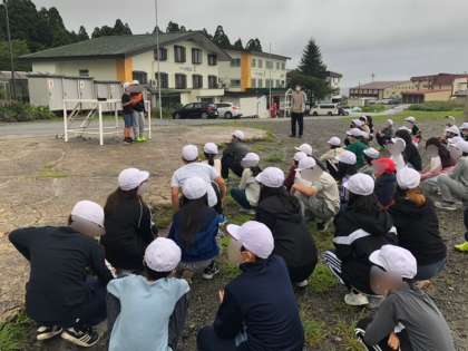 おはようございます。9月2日(金)、自然体験学習2日目です。昨日はとても楽しく目一杯活動できたので、夜はしっかり眠れたようです。朝の集いは、最初、外で集まったのですが、雨が降ってきたので多目的室で進めました。