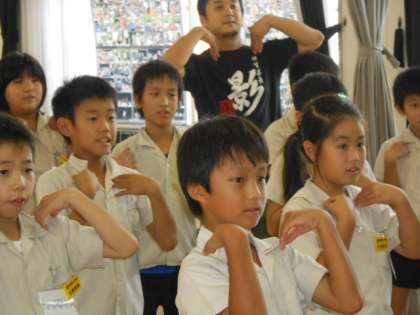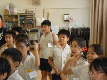 給食後の5時間目の英語活動でした。歌に合わせて振りをつけています。