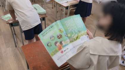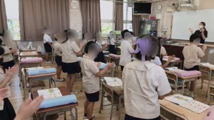 音楽の学習です。曲に合わせて体を動かしたり、きれいな声で歌ったり、とても楽しそうでした。