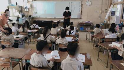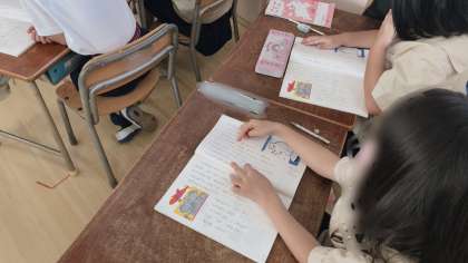 国語の音読の学習です。読むところを指でなぞりながら、丁寧に読んでいきます。
