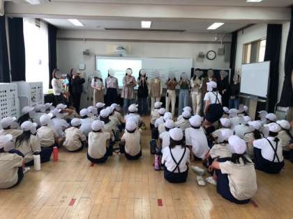 5年生は、3〜4時限目にSDGsについて考える出前授業を受けました。同志社女子大の学生さんたちと学校周辺を歩き、落ちているゴミを拾い集めました。自分たちが集めたゴミでユーモラスな写真をつくり、その写真とともに今回の活動について思ったことを発表しあい、SDGsに繋げていこうという取り組みです。此花区役所の方々にもお手伝いいただきました。副区長さんにも来ていただきました。